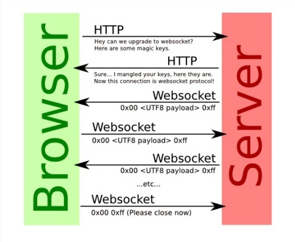 서버와 클라이언트간의 웹소켓 연결은 HTTP프로토콜을 통해 이루어진다. 연결이 정상적으로 이루어진다면 서버와 클라이언트 간에 웹소켓 연결(TCP/IP기반)이 이루어지고 일정 시간이 지나면 HTTP연결은 자동으로 끊어진다.