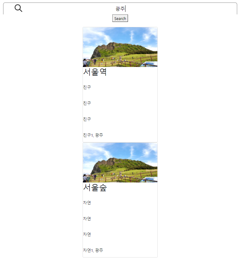 // 검색 시 db에서 테그 가져오고 여행지 카드 보이기