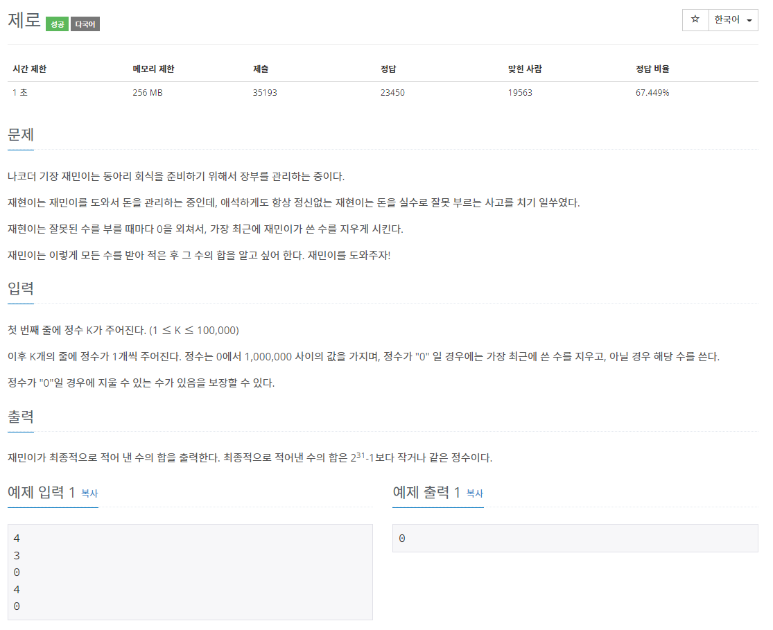 - for문을 돌려 n이 0이 아닐 때 list에 숫자를 넣어주고, n이 0일 때 앞에 숫자를 pop해준다