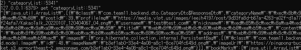 - redis-cli에서 조회해본 화면이다. 내용이 너무 많아서 중간에 잘랐지만 잘 나오는 것을 확인할 수 있다.