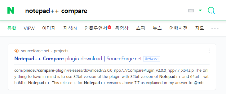 검색창에 'notepad++ compare'를 검색하고 가장 위에 뜬 사이트에 접속해주세요