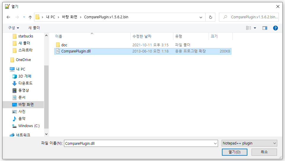 다운로드 받은 압축파일의 압축을 푸는데 'ComparePlugin.dll'파일의 위치를 잘 기억하세요! 저는 바탕화면에 압축을 풀었어요. 전체 파일을 압축해제할 필요 없의 dll파일만 해제대도 됩니다.