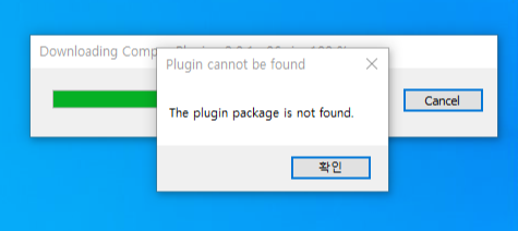 설치될거 같이 뜨더니 아래와같이 'The plugin package is not found.'라는 오류가 뜬 경우가 있어요! 당황하지 않고 수동설치 해줄 테니 오류가 뜨신분들은 4, 5, 6, 7번을 따라 해 주세요
