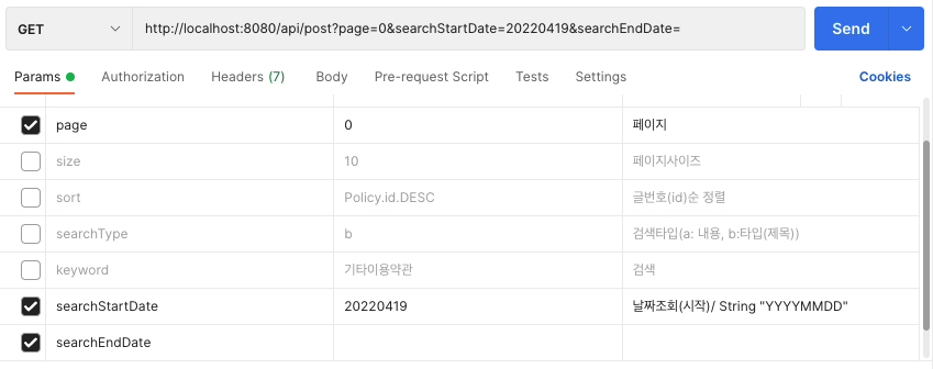 public PageImpl<PostResponseDto> getPostList(@RequestParam(value = "searchStartDate", required = false) String searchStartDate,