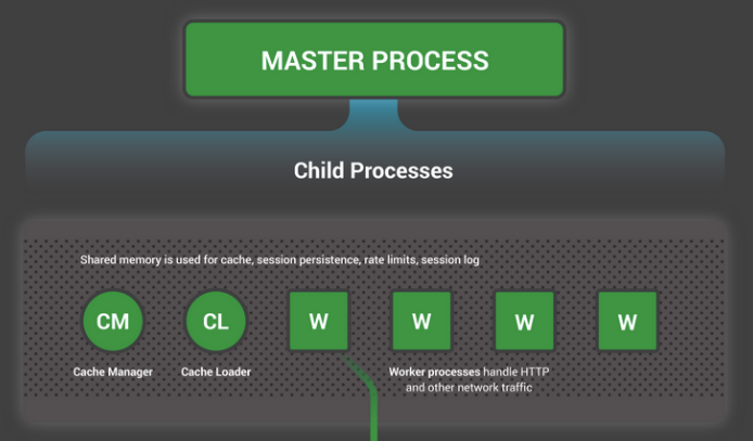 NGINX는 1개의 master process와 3종류의 자식 프로세스로 구성