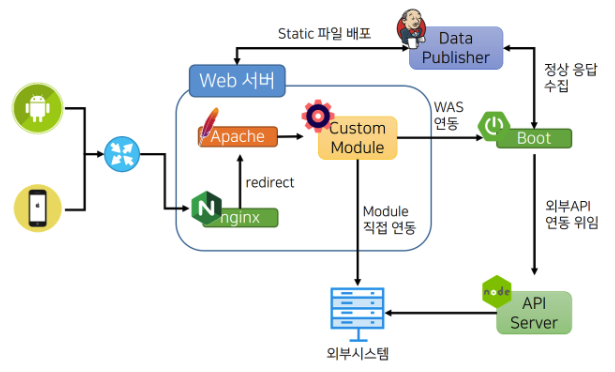 - 특히 대용량 웹 어플리케이션의 경우(여러 개의 서버 사용) Web Server와 WAS를 분리하여 무중단 운영을 할 수 있고, 이를 통해 장애에 쉽게 대응
