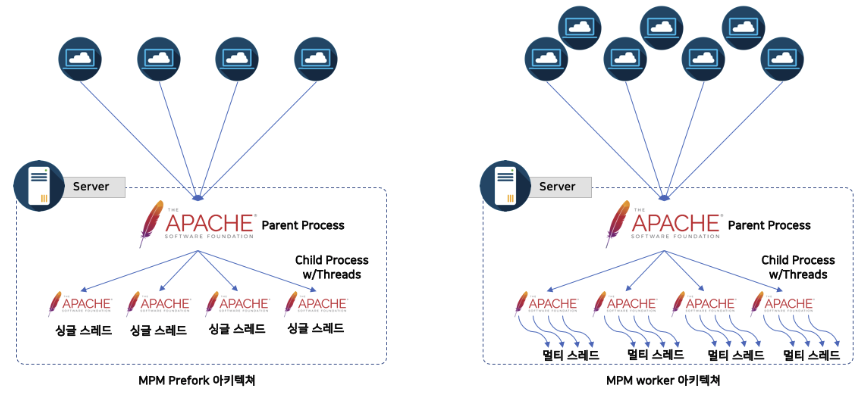 - Worker MPM 방식(멀티 스레드)