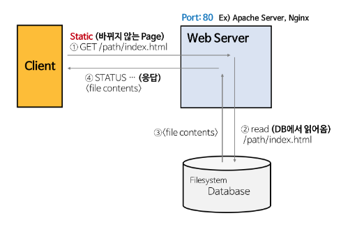 - Web Server의 예 : Apache Server, Nginx, IIS(Windows 전용 Web 서버) 등
