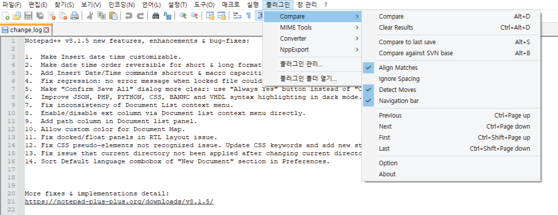 notepad++ compare plugin으로 코드 비교하기