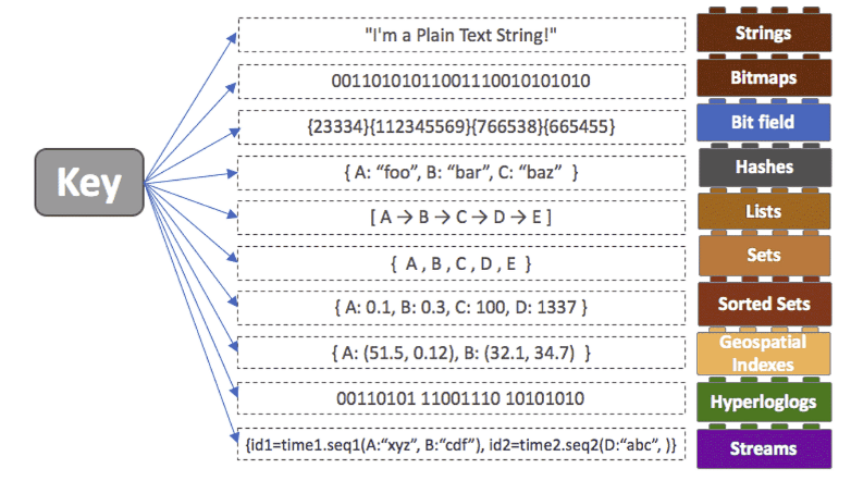 Redis는 인메모리 데이터 구조 저장소로, 키-값 쌍의 데이터를 메모리에 저장하여 매우 빠른 응답 속도를 제공한다. 또한, Redis는 다양한 데이터 구조를 제공하며, 이 활용하면 다양한 유형의 데이터 관리가 가능하다. 대표적인 데이터 구조는 아래와 같다.