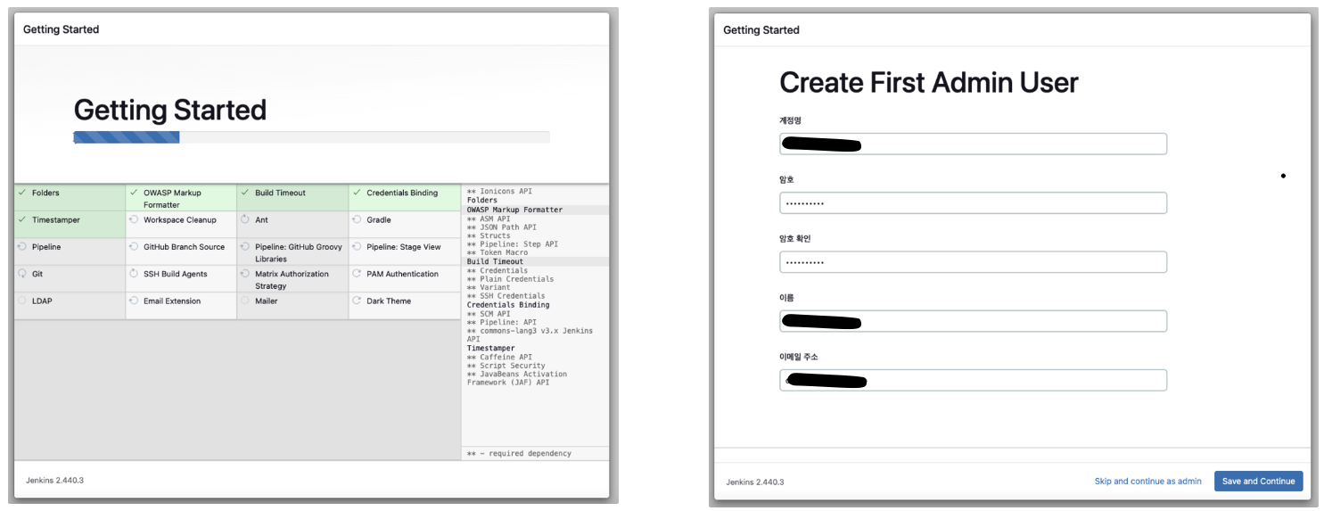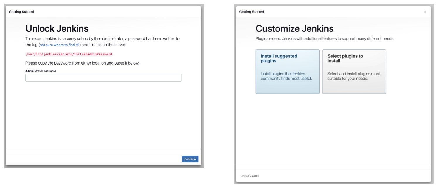 - Unlock Jenkins -> 확인했던 초기비밀번호를 입력