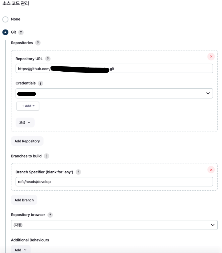 - Dashboard > Jenkins 관리 > Tool 에서 git 경로를 설정해줌 /usr/bin/git