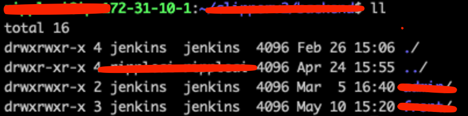 - 이후 jenkins user로 deploy.sh 파일이 실행이 되나 아직도 Permission denied 오류가 계속됨