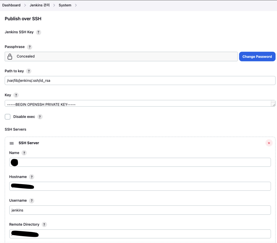 10. Jenkins 관리 - system - publish over SSH에서 ssh key 등록, 서버 설정