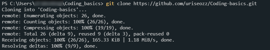 2. 로컬에 레포1을 clone 한다. 경고문구가 나오지만 신경쓰지 않아도 된다.