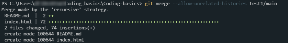 git merge --allow-unrelated-histories 레포2이름/레포2브랜치이름