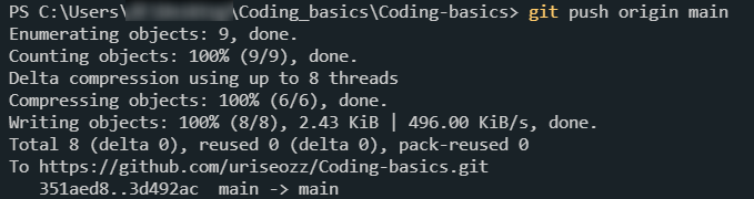 8. push하기 (commit하지 않고 바로 push해도 됨)