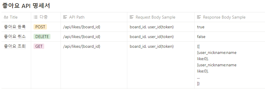 좋아요 API