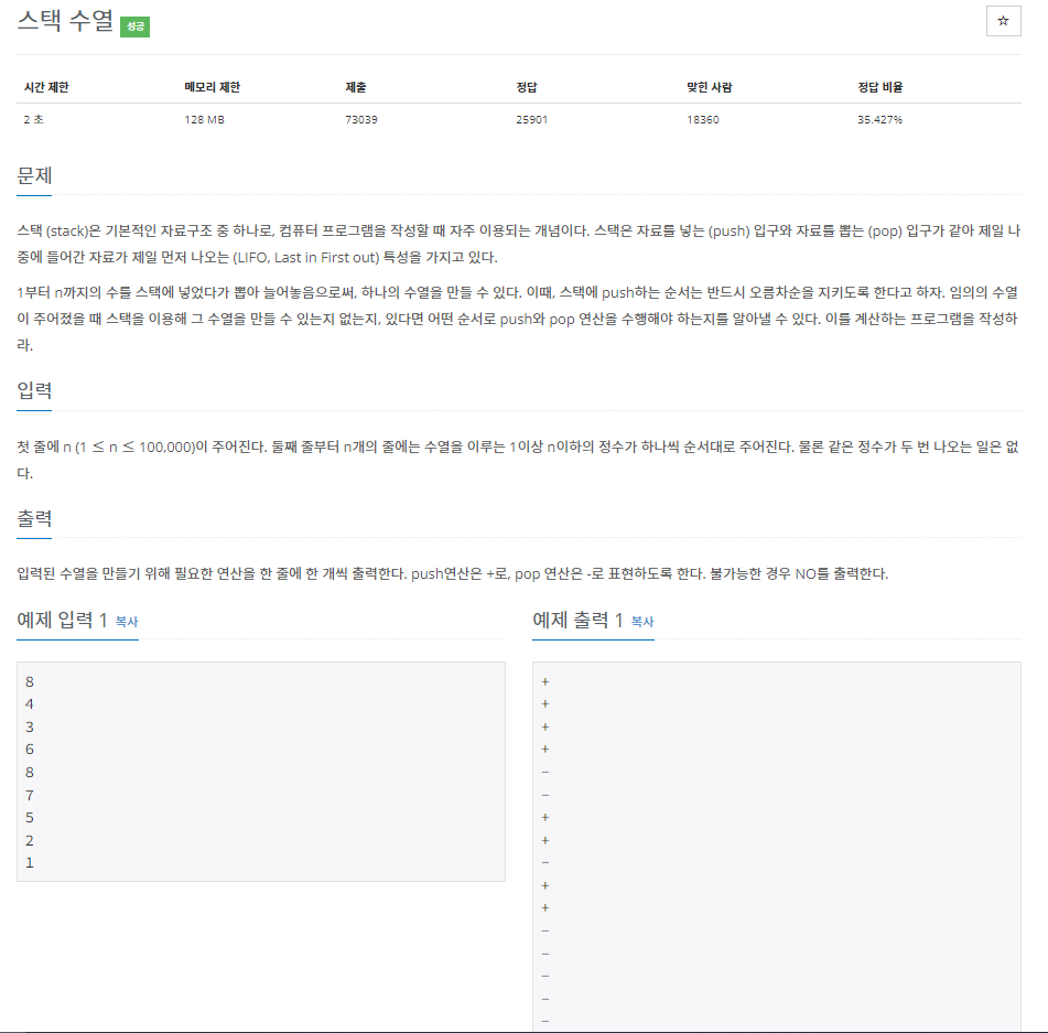 https://www.acmicpc.net/problem/1874