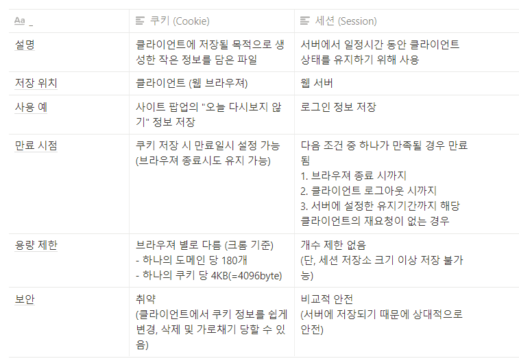 - 클라이언트에 저장될 목적으로 생성한 작은 정보를 담은 파일