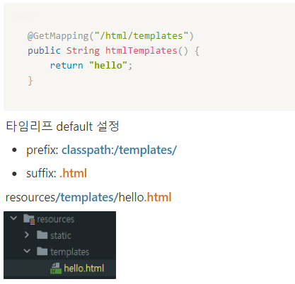 - 타임리프 default 설정으로 인해 return 값을 templates의 html문서 이름으로 한다(String X)